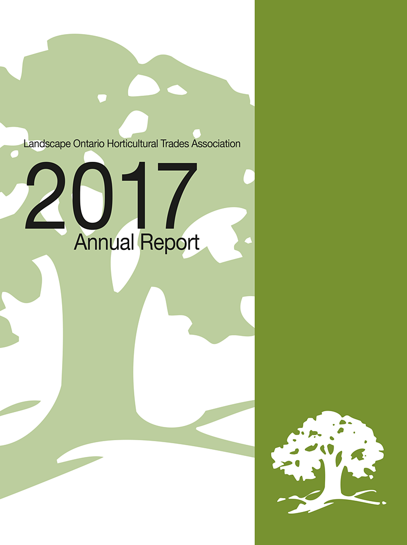 Landscape Ontario’s Annual Report is a summary of association activities for the fiscal year Sept. 1, 2016 to Aug. 31, 2017. The Annual Report includes reports by various LO Chapters, Sector Groups, and committees, as well as a full list of volunteers and financial statements. Included with the December 2017 printed version of Landscape Ontario magazine, the Annual Report is distributed to members of the association.