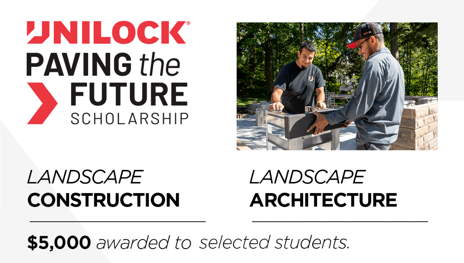 Unilock, a style and technology leader in concrete interlocking paving stones, slabs and retaining walls, wants to help the next generation of landscaping leaders follow their dreams and make their mark with its Paving the Future Scholarship. The company has awarded $175,000 to 35 students since 2022 and is looking for the next cohort of talented recipients.
