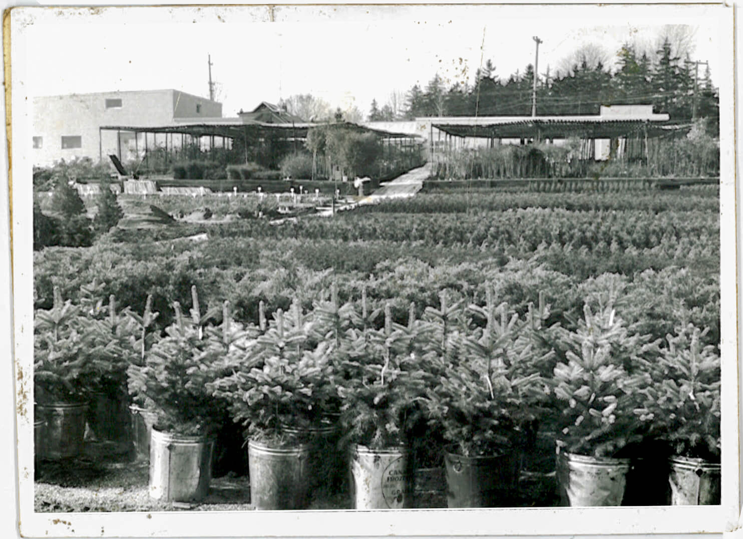 At this time, growing in containers was a major innovation for the nursery industry. Gord found that hospitals used five gallon metal cans that contained puréed food. He would go around to area hospitals and retrieve the empty containers, which proved ideal for the first container-grown nursery stock. Drain holes would be punched into the cans.