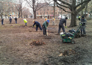 “A green and healthy lawn is just as important as a tree,” says Kyle Tobin, owner of LawnSavers Plant Health Care and a co-manager of the St. James Park project. “We have a unique opportunity right now before winter to restore the lawn and take advantage of ideal conditions. We will get in there and it will go from brown to green immediately and flourish next spring.”