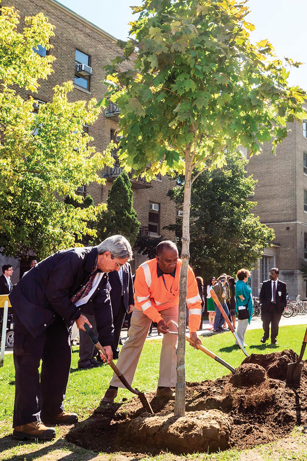 Sunnybrook Health Sciences Centre celebrated National Tree Day by planting 26 maple trees with the help of Maple Leaves Forever and Landscape Ontario. The Sept. 24 event saw 25 10-gallon sugar maple trees and one 50 mm caliper sugar maple, donated by Maple Leaves Forever, planted at the Sunnybrook Bayview campus through Dutchmaster Nurseries. The day was part of a national celebration of trees, supported by Tree Canada. Sunnybrook thanked Mike Rosen, president of Tree Canada; Jeff McMann, of Mount Pleasant Cemetries;Tony DiGiovanni of Landscape Ontario; and Richard Walker, of Tree Canada, for helping with the initiative.