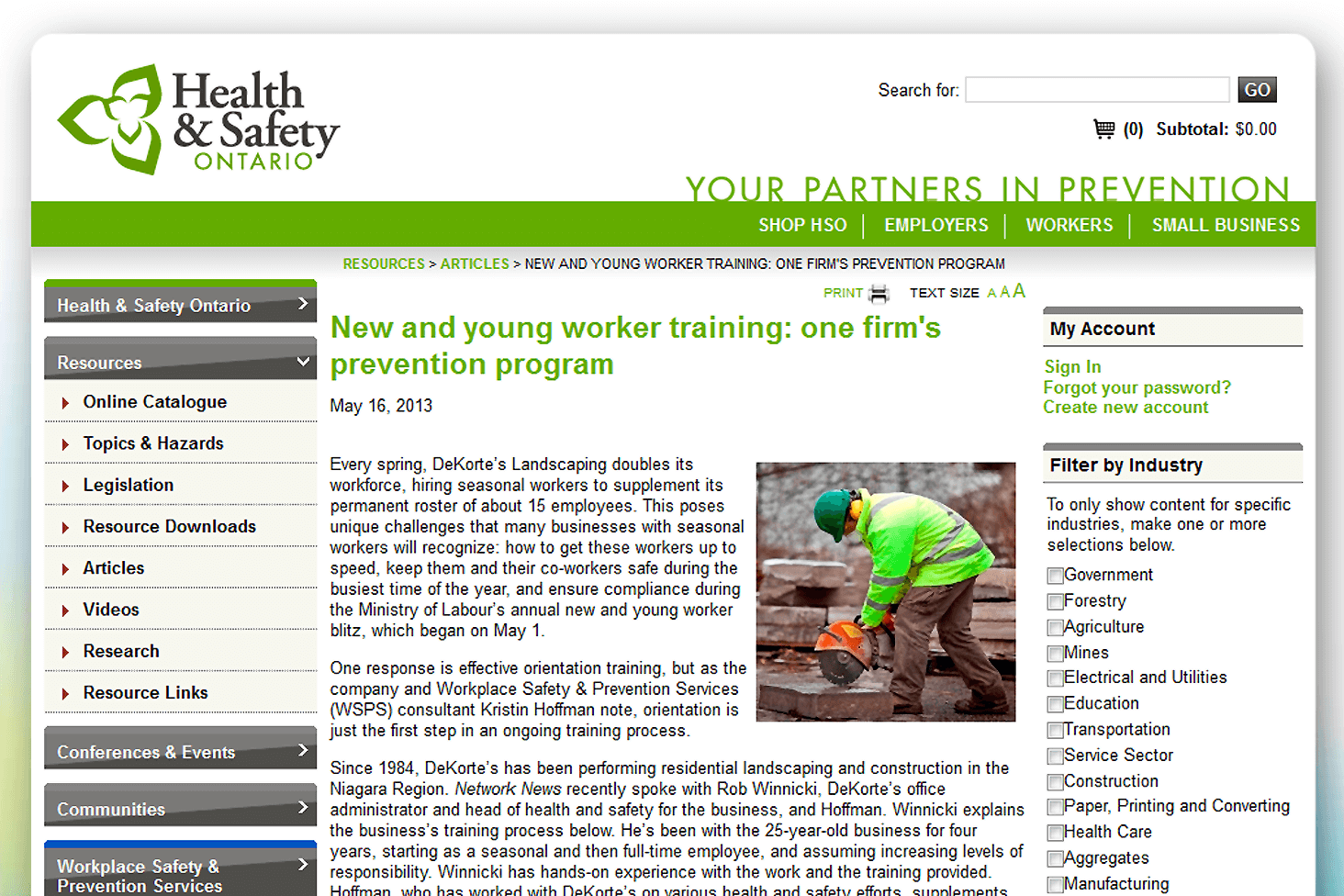 Landscape Ontario member DeKorte’s Landscaping in Fenwick was highlighted by Workplace Safety and Prevention Services (WSPS) as an example of preparing staff for a season of safe employment.