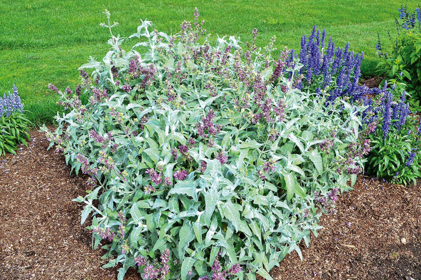 Many other plants do not win the popularity contest each year, but are still worthy of attention. A salvia named Lancelot is one of these. It has a dramatic appearance and interesting name (which probably comes from its shield-shaped leaves) which are covered in fine, white pubescence, similar to woolly lamb’s ears. The very attractive grey foliage acts as a great backdrop to the violet blooms that form later in the summer.