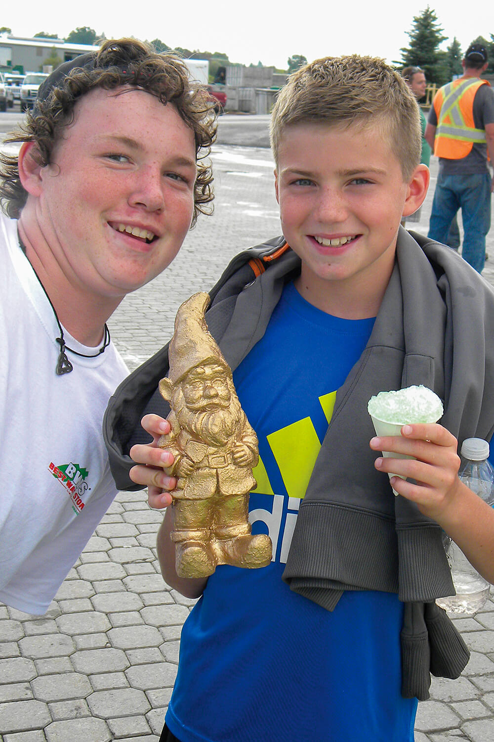 The annual Durham Chapter Suppliers’ Barbecue was another great success this year. Proceeds of the event go to the Port Perry Hospital Foundation. The event provides suppliers an opportunity to showcase their products and services within the landscaping community. It’s also a family affair, with the general public invited and many activities for the kids. In photo, Nick Fulford, on left, son of Carol and John Fulford, and Hunter Scarlett, son of Chapter president Greg Scarlett, pose with LO mascot Grout. Hunter took the ALS ice bucket challenge at the event.
