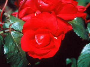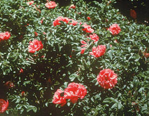 A wonderful small plant that produces small clusters of semi-double, scarlet-red blossoms, Nicholas has proven to be quite hardy, surviving open ground conditions and temperatures of -35°C with virtually no winterkill. It is a promising and very floriferous long-season bloomer. The bush has shown no blackspot or mildew. The flowers have little fragrance.