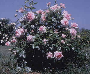 This is a soft, semi-double and fragrant rose that grows on a vigorous, upright bush. It repeats well and is well formed. Its main drawback is a tendency for sections of the bush to die out.
