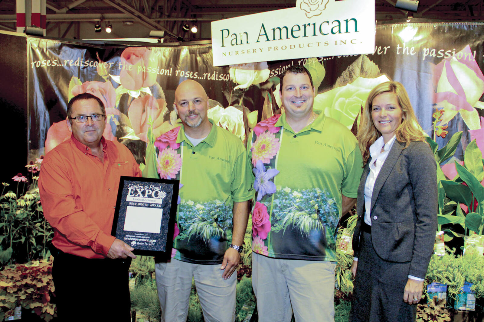 Pan American Nursery Products of Millgrove won best booth award for under 200 sq. ft., while Maple Leaf Nurseries of Jordan Station received the award for booths over 200 sq. ft.