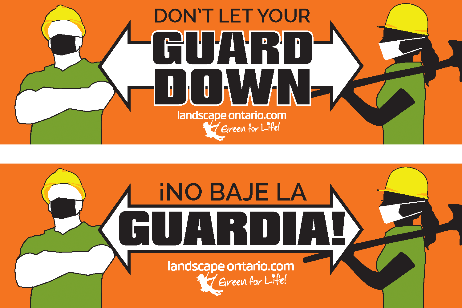 “Don’t let your guard down” is the theme of a campaign led by Landscape Ontario’s Covid-19 Task Force, highlighting the importance of safety protocols. Landscape Ontario printed 20,000 decals promoting that message; one is polybagged with this issue, and more may be ordered online or by contacting the LO office. The decals measure eight by 2-1/2 inches, and the Task Force encourages members to place as many as possible on equipment and trucks.