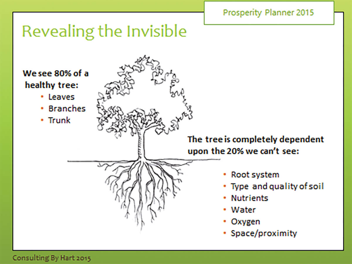 In the Build Your Prosperity Workshop, we provide tools to establish or enhance the invisible core of your business, to support your tangible operations and results.