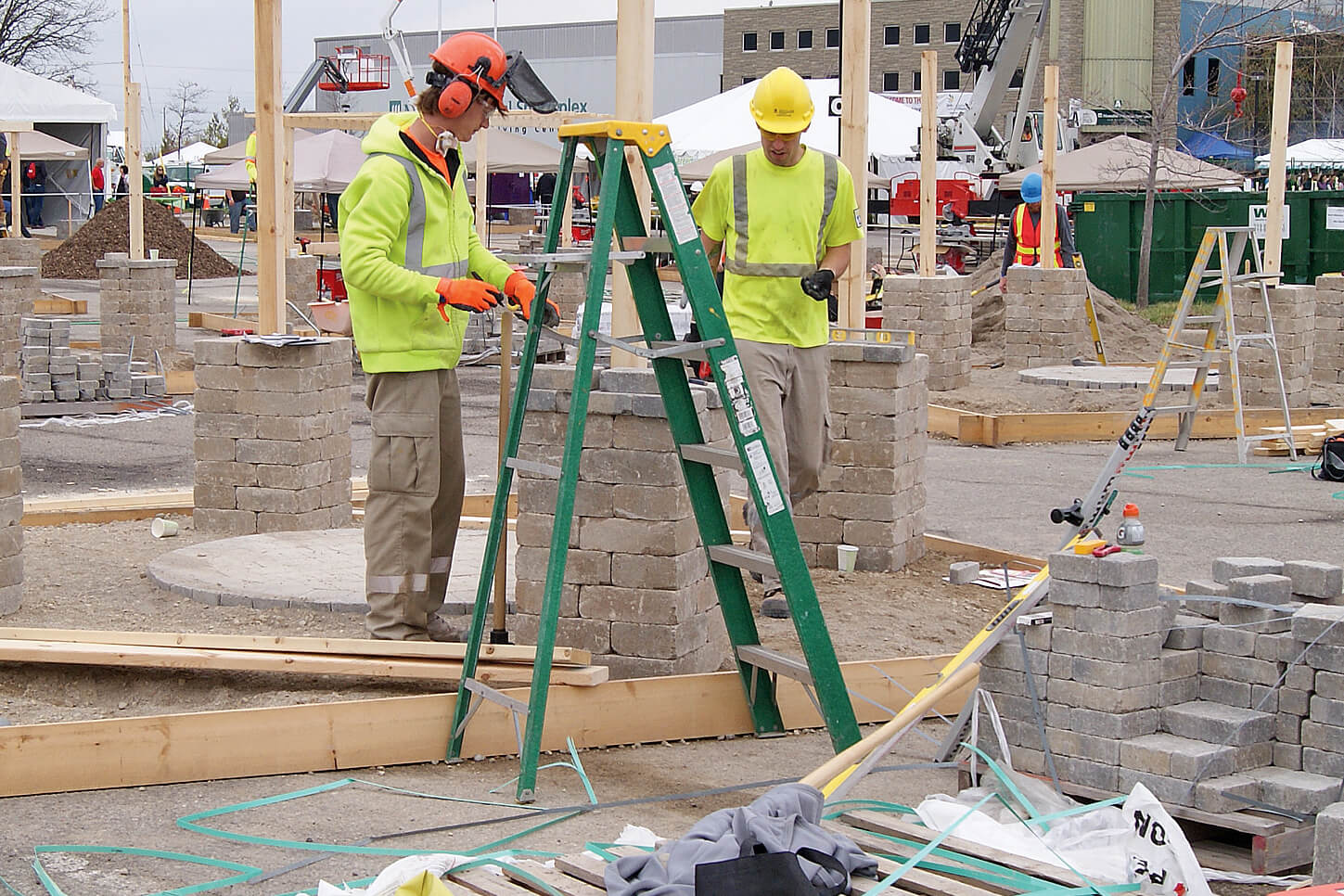In the horticulture-landscape competition, teams of two were tested by building gardens based on a common set of criteria and drawings. Skills under evaluation included creating walls from precast paving units, laying paving stones, plant selection and placement of landscape rocks.