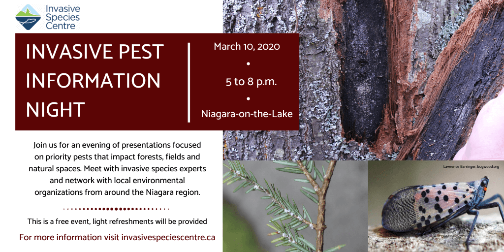 The Invasive Species Centre is hosting an Invasive Pest Information Night in Niagara-on-the-Lake. The night will include presentations on key invasive species of concern, as well as an opportunity for networking amongst local environmental organizations and the public. (See Agenda).