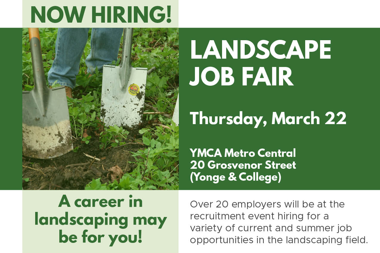 Youth are supported through the City of Toronto and community partner networks. They are prepared for opportunities in the landscaping sector will attend from 1:00 to 2:00 p.m. The event will then open up to all job seekers from 2:00 to 4:00 p.m. Booth space is limited and will therefore be allocated on a first come, first serve basis.
