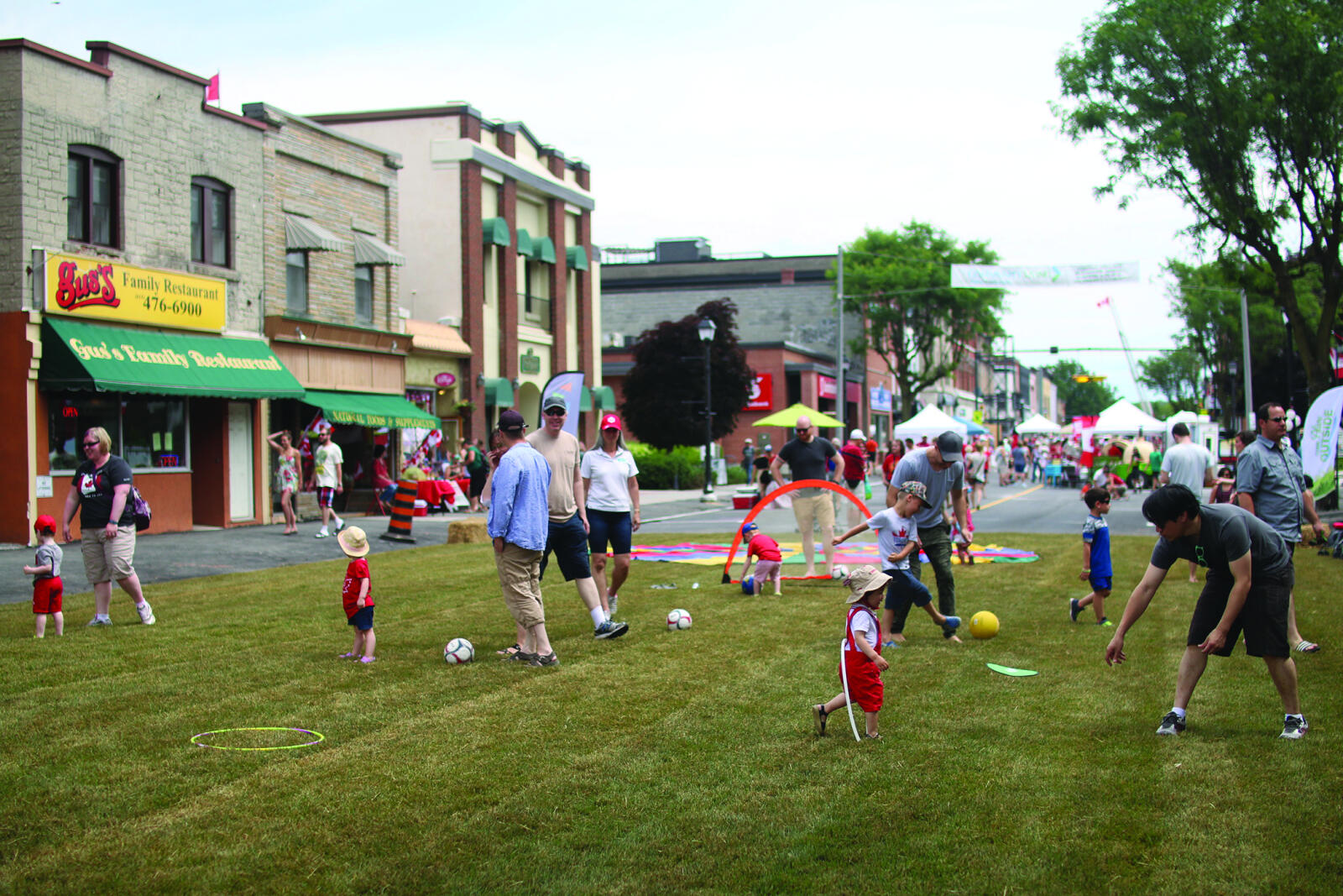 Families, friends and and neighbours take full advantage of a closed off street in Picton on July 1.
