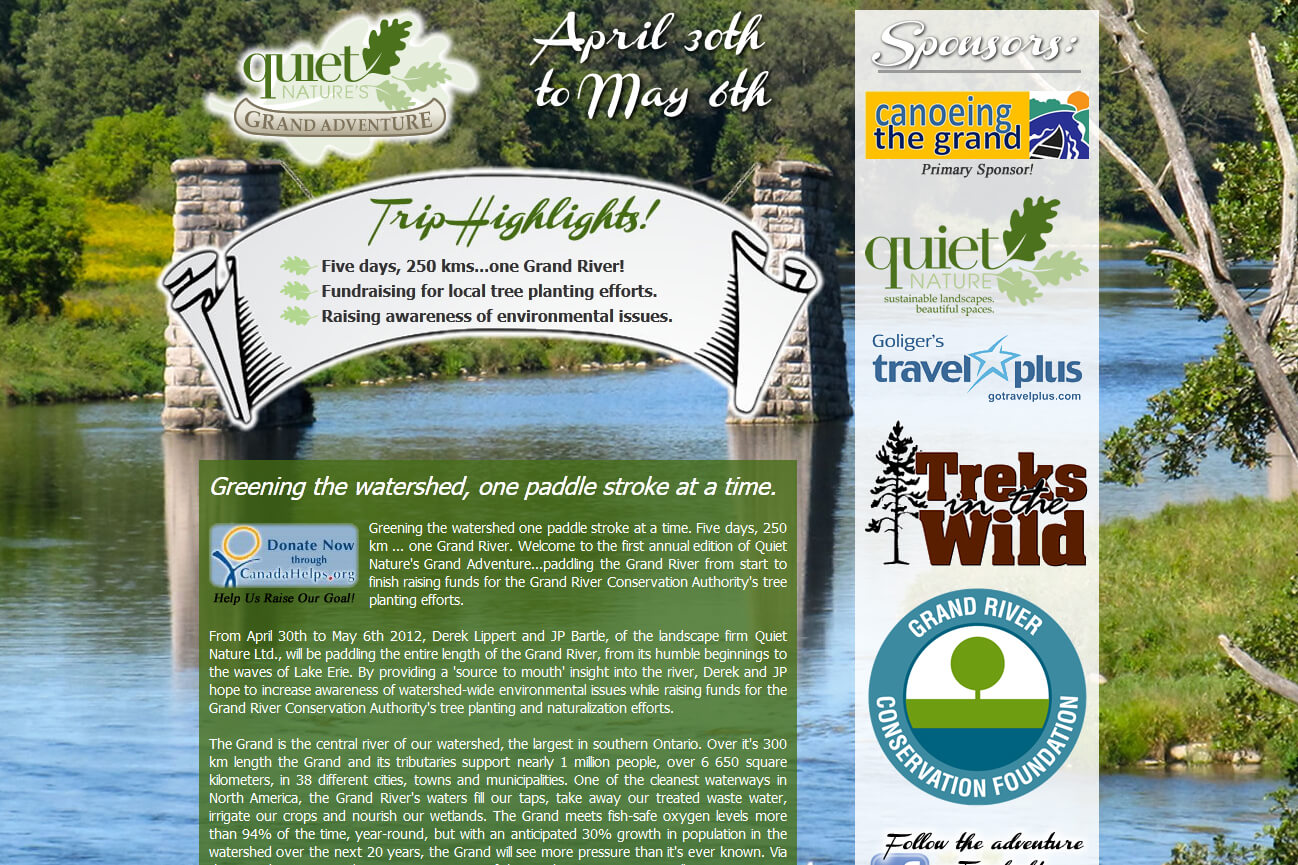 A regular canoeist and backcountry camper, and having paddled good portions of the Grand over the years, Lippert thought it would be nice to do a two-day trip down the river in mid-spring. “The thought of a two-day trip turned into thinking about paddling the whole river, from Grand Valley to Lake Erie. I quickly figured this would take a minimum of five days; and, as the owner of a landscape company, taking off five days in mid-spring was more or less out of the picture. So, I figured that the only way I could justify a five-day adventure/holiday during the busiest part of our season was by doing some good in the process.”