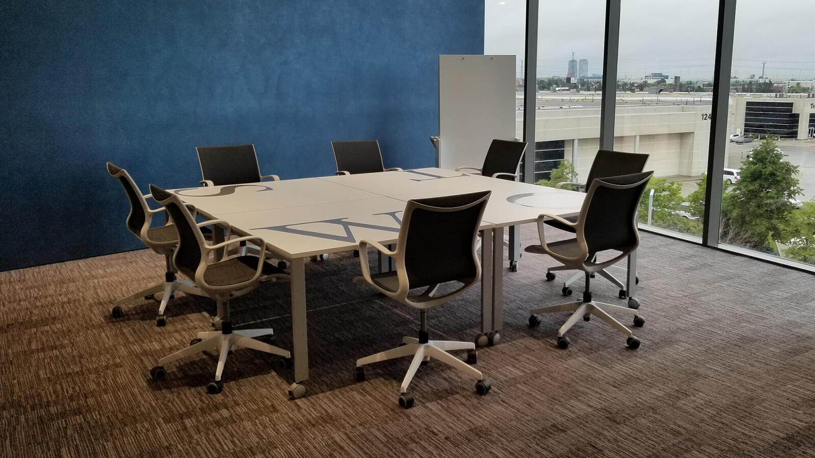 Collaborative meeting room tables that can be arranged in any configuration for break out groups, etc.