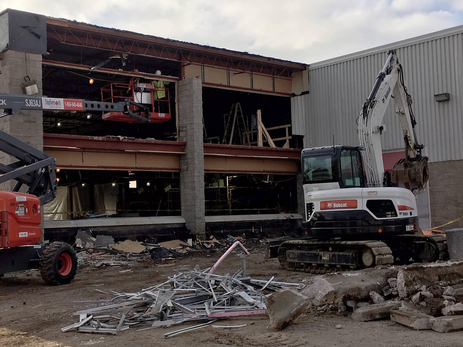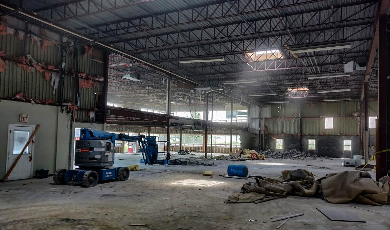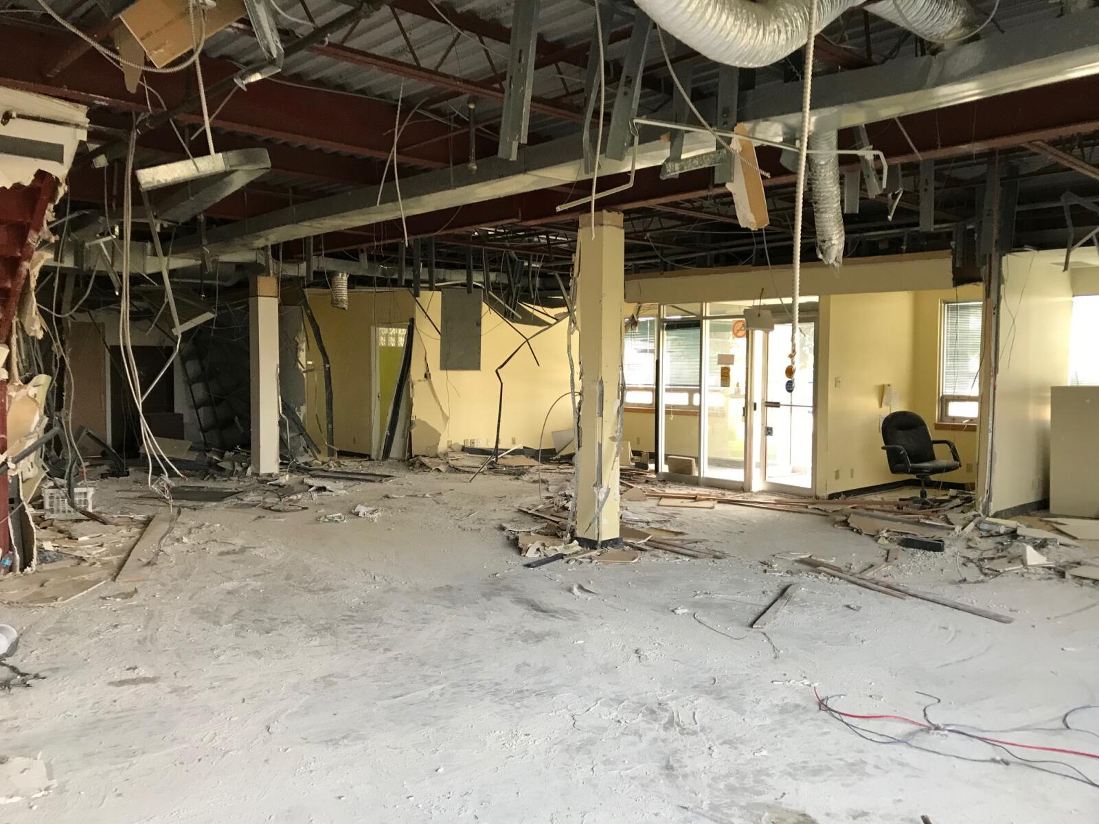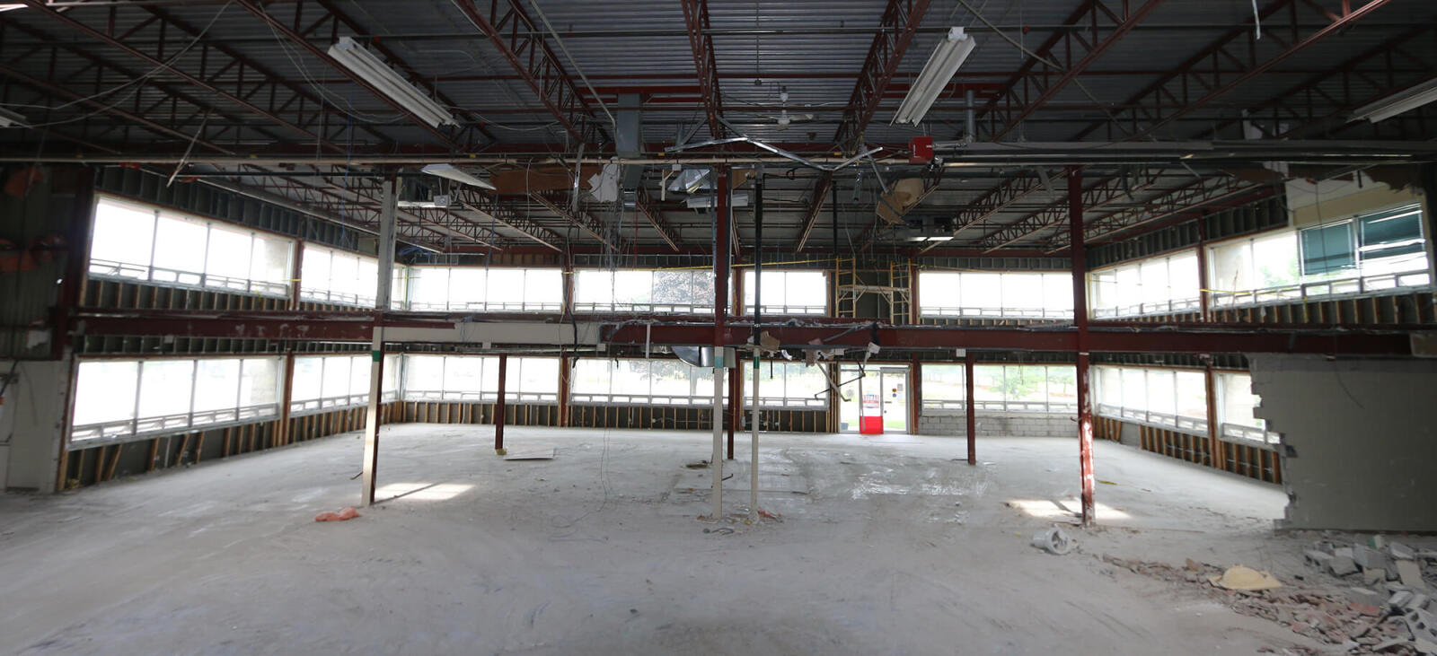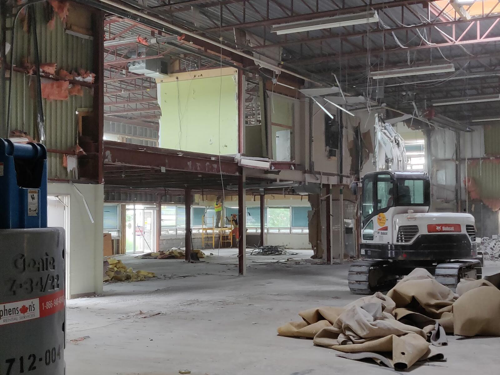 Former location of the washrooms, back staircase and classrooms. All completely removed in addition to VBI offices in warehouse.