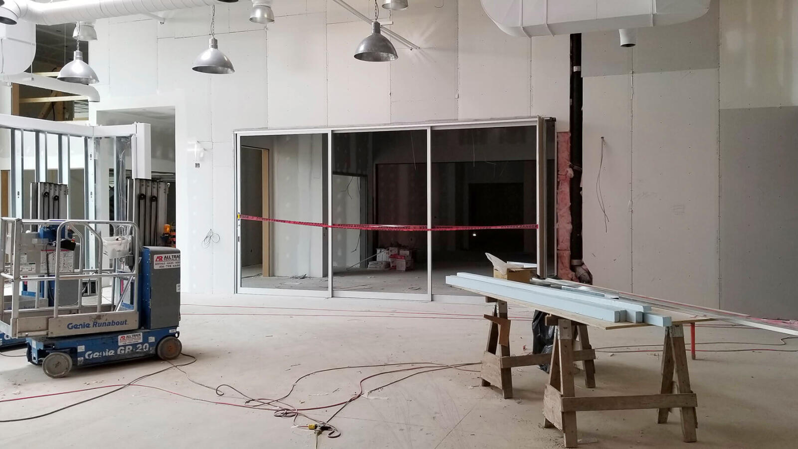Interior drywall complete. Interior finishes taking shape (paint, door, glass, etc.). See gallery.