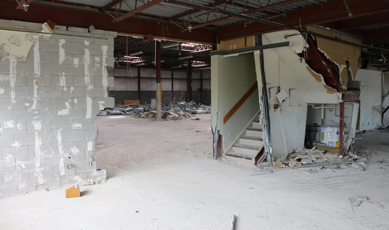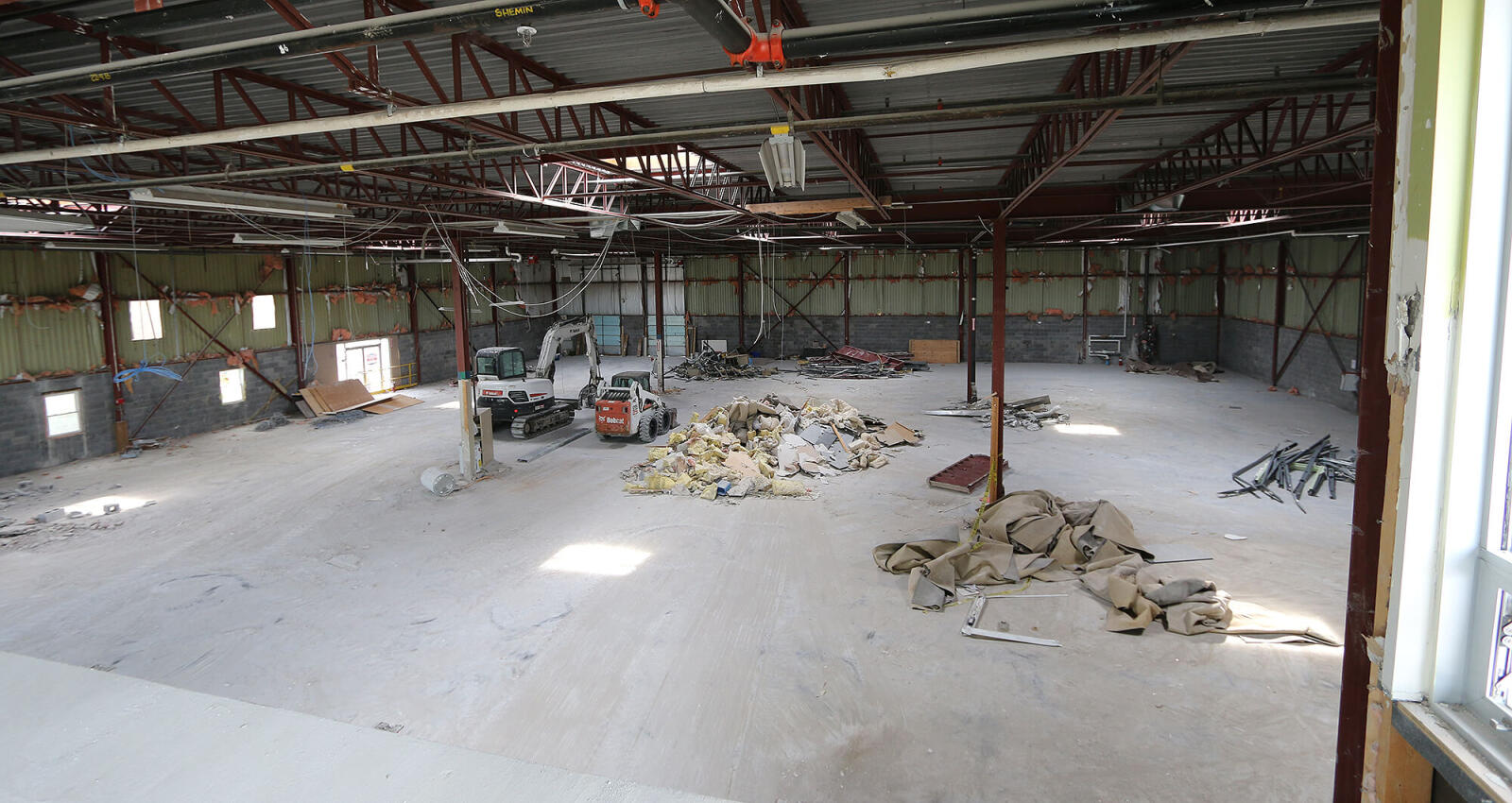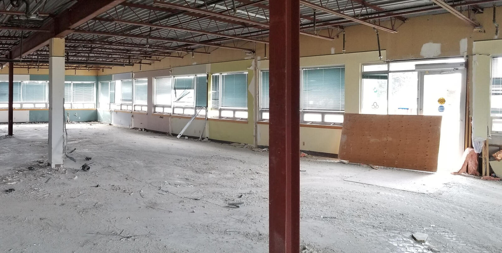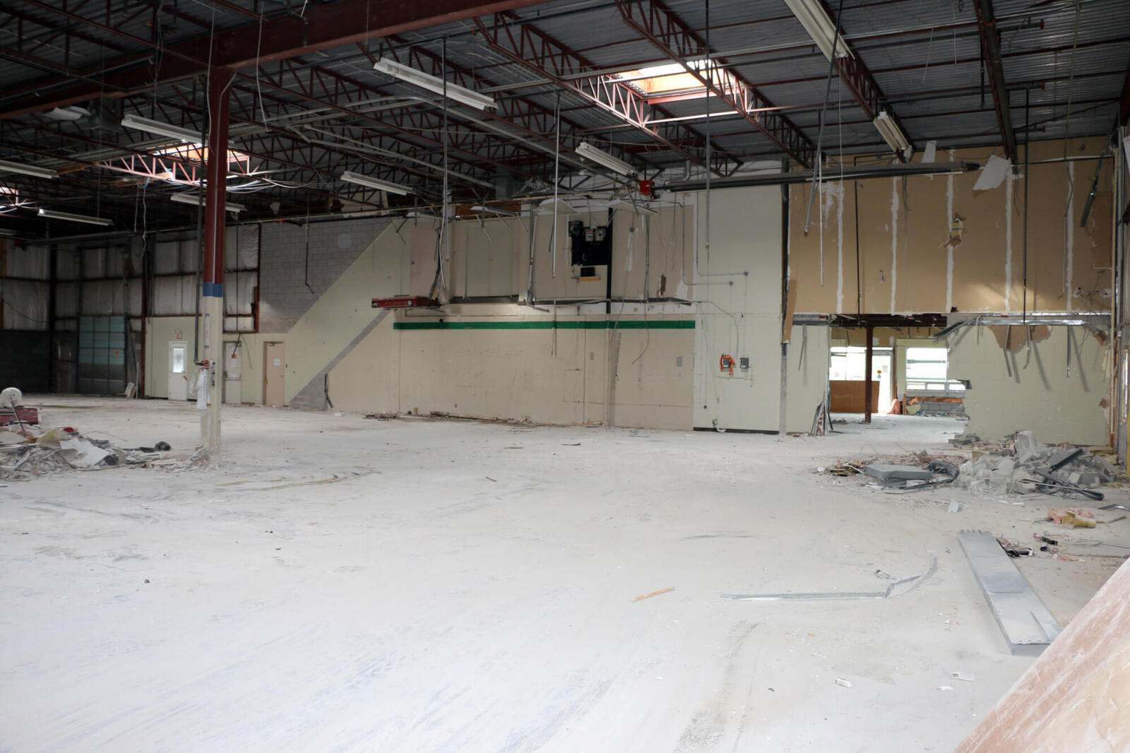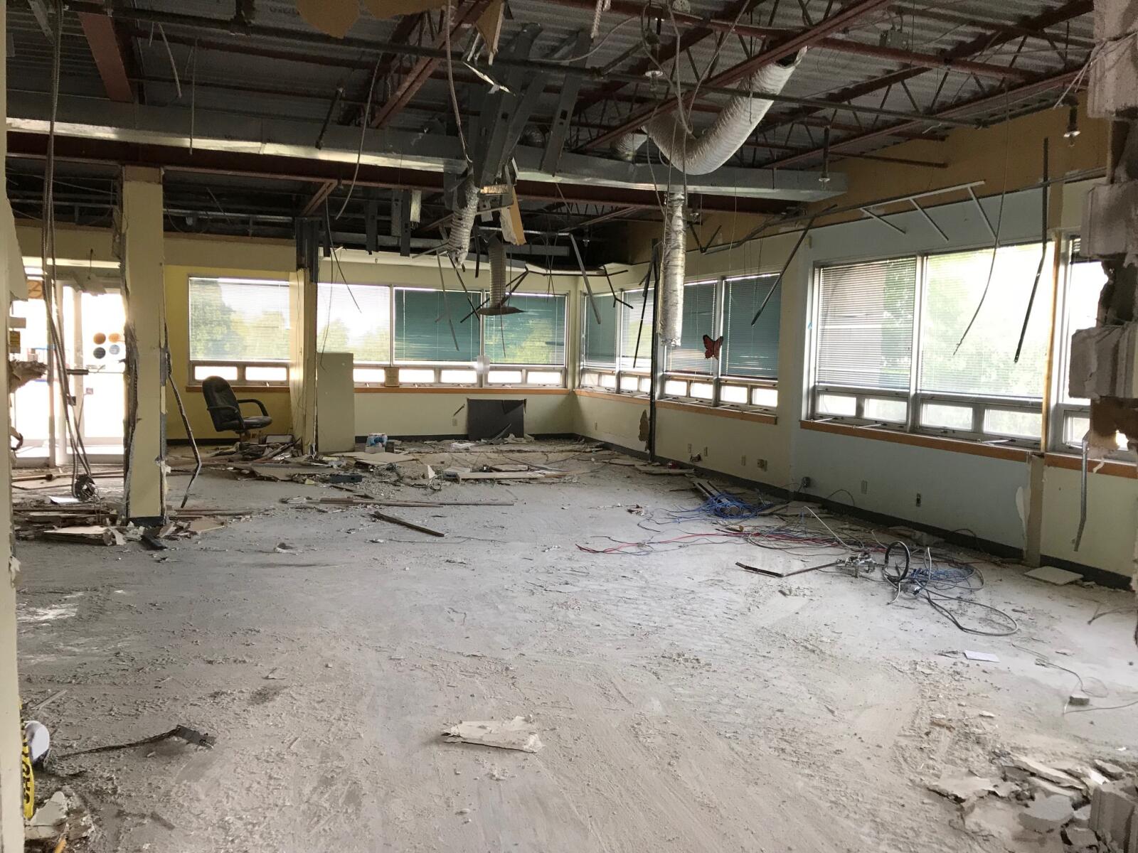 Former location of the washrooms, back staircase and classrooms. All completely removed in addition to VBI offices in warehouse.