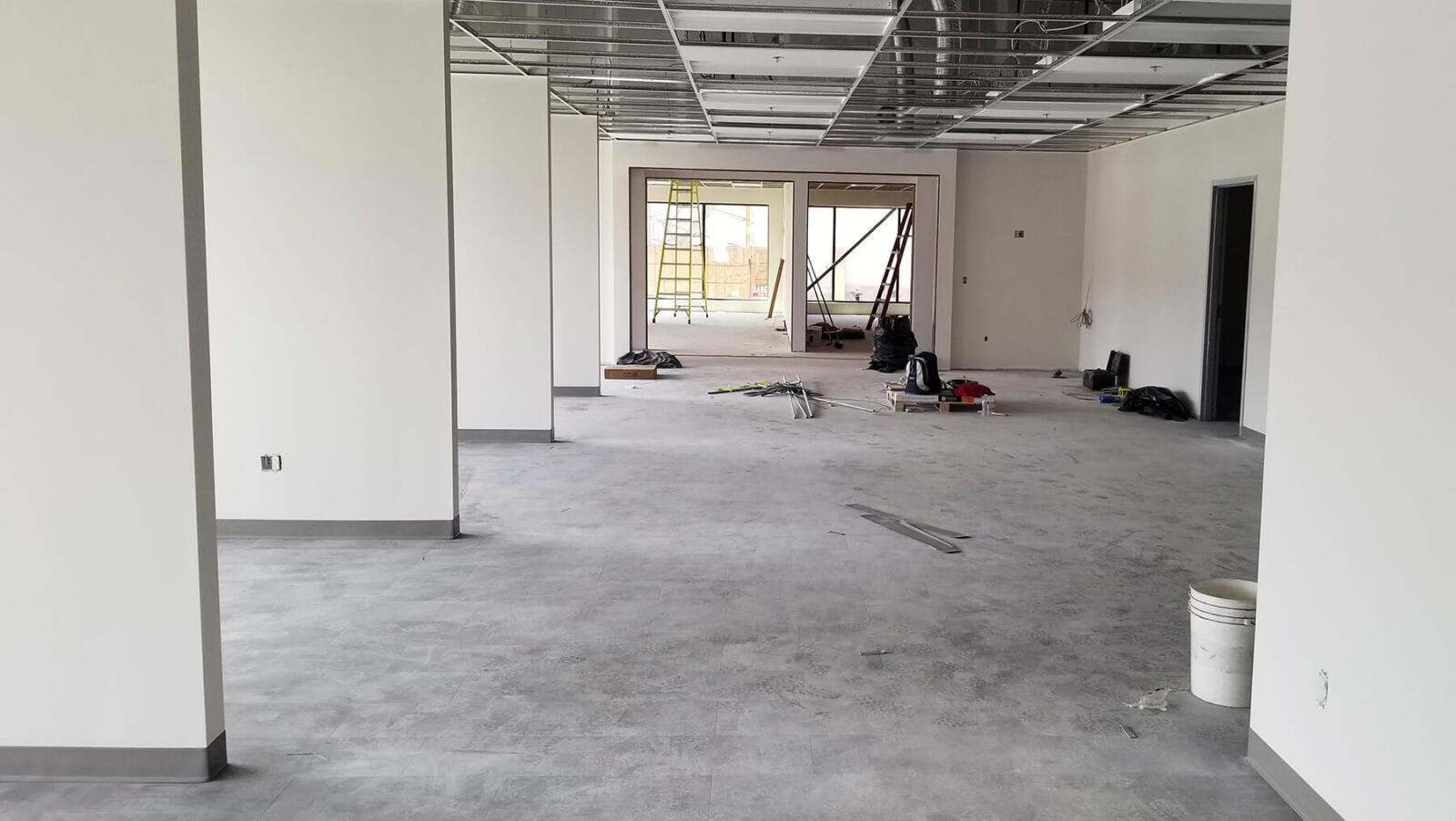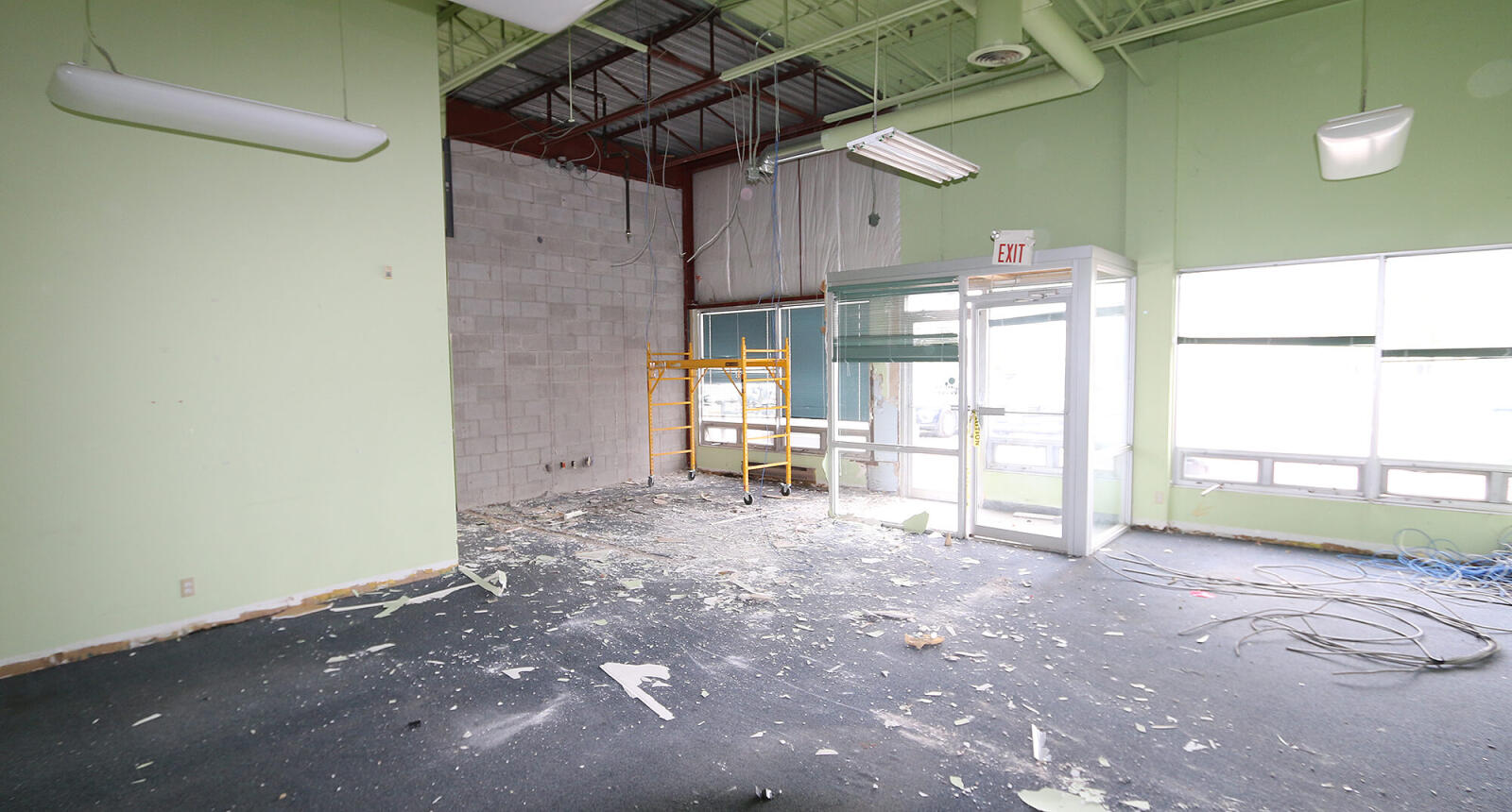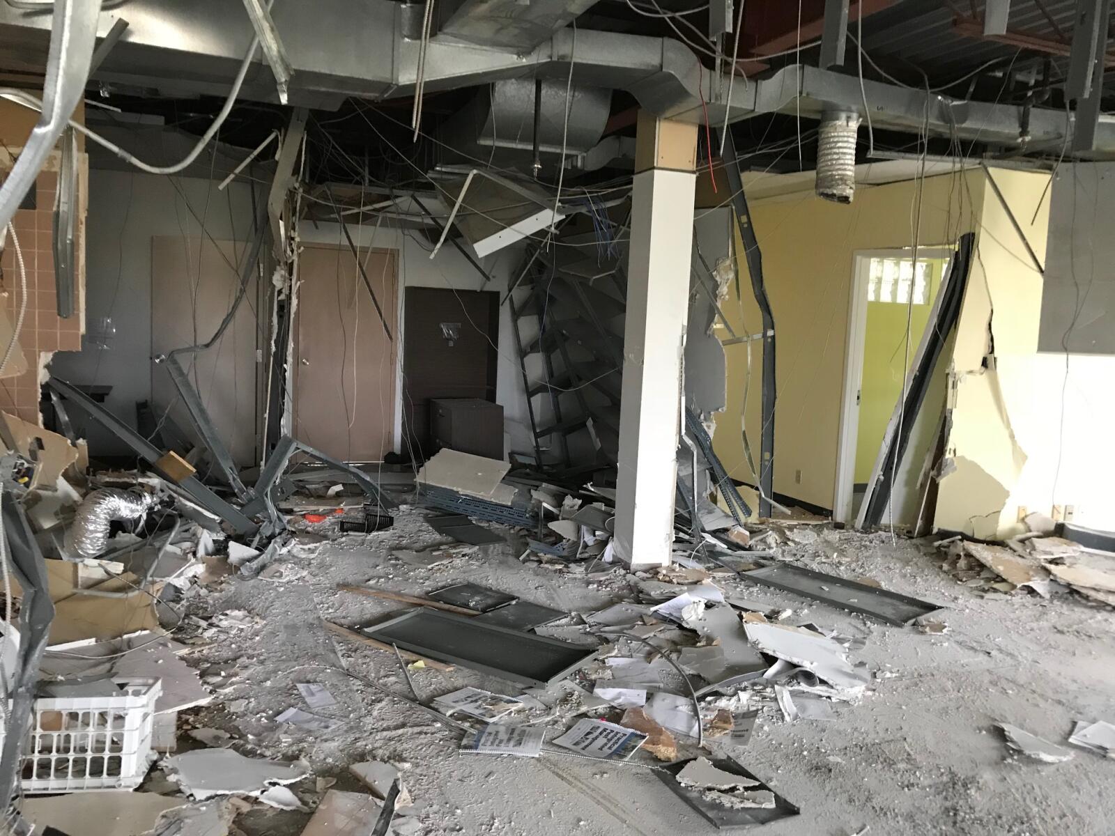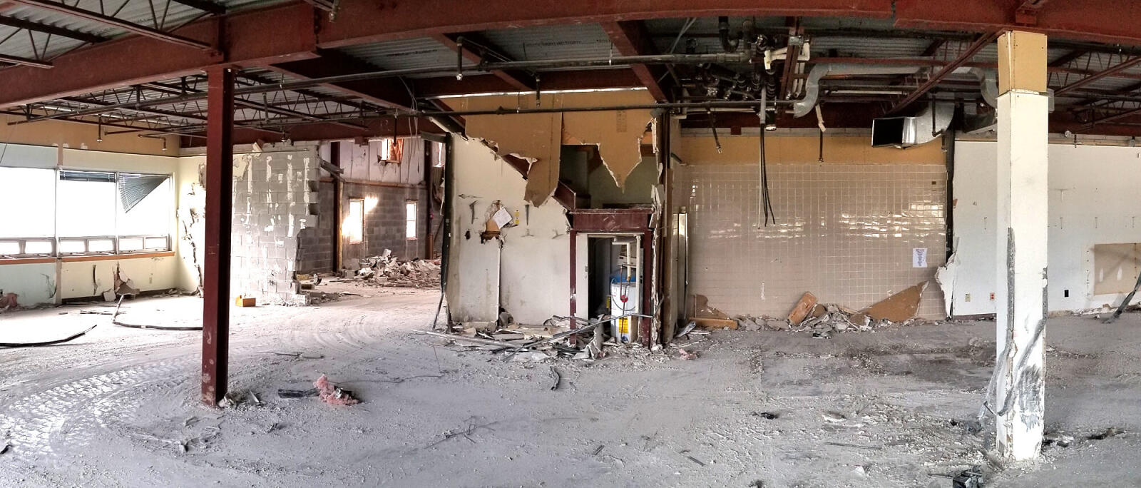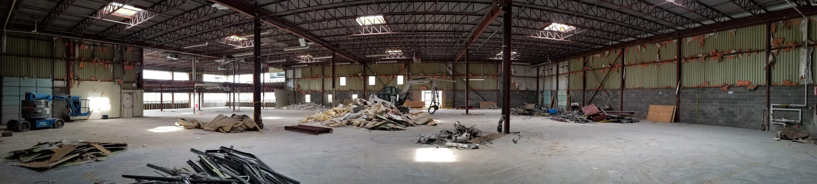 Former location of the washrooms, back staircase and classrooms. All completely removed in addition to VBI offices in warehouse.
