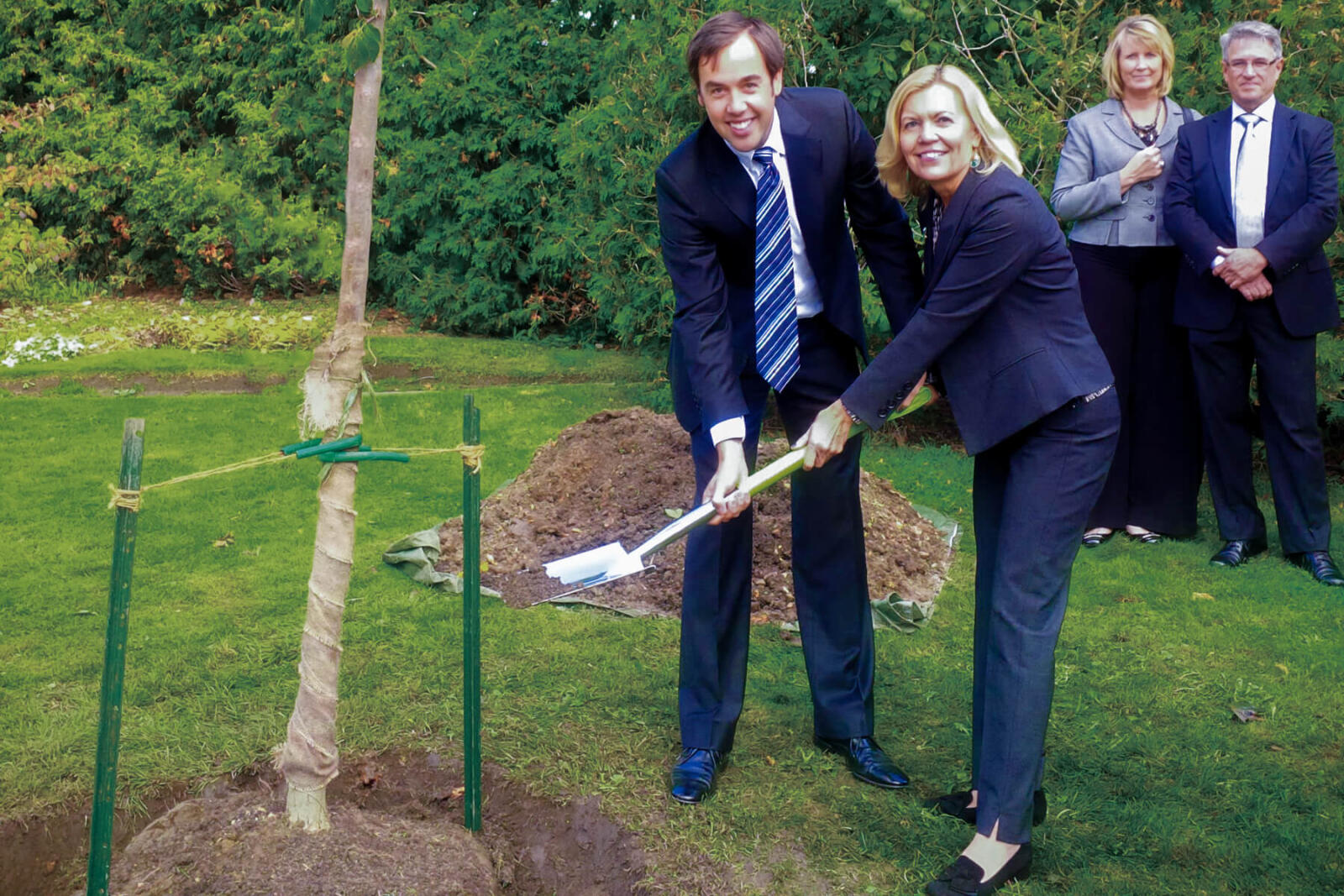 The Oct. 17 event saw a Siberian elm planted at the historic Oshawa site. This is the second tree planting event at Parkwood associated with Canada’s former Minister of Finance. Back in 2011, Flaherty used a tree planting at Parkwood to launch Canada’s National Tree Day.