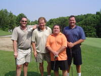 Raising funds for the Hospital for Sick Children, golfers participated in a number of contests, including two hole-in-one contests, sponsored by New Roads National Leasing and Golfers Green. The two prizes, a new GMC truck and a trip for two to North Carolina, went unclaimed again this year, with no one able to sink the ball. The putting contest raised just over $1,000, with many golfers trying to attain the top score needed to win the CD system, provided by Humber Nurseries and Perma Paving Stone Company. Greg Stillie earned the highest marks, with a score of 12 out of a possible 20.