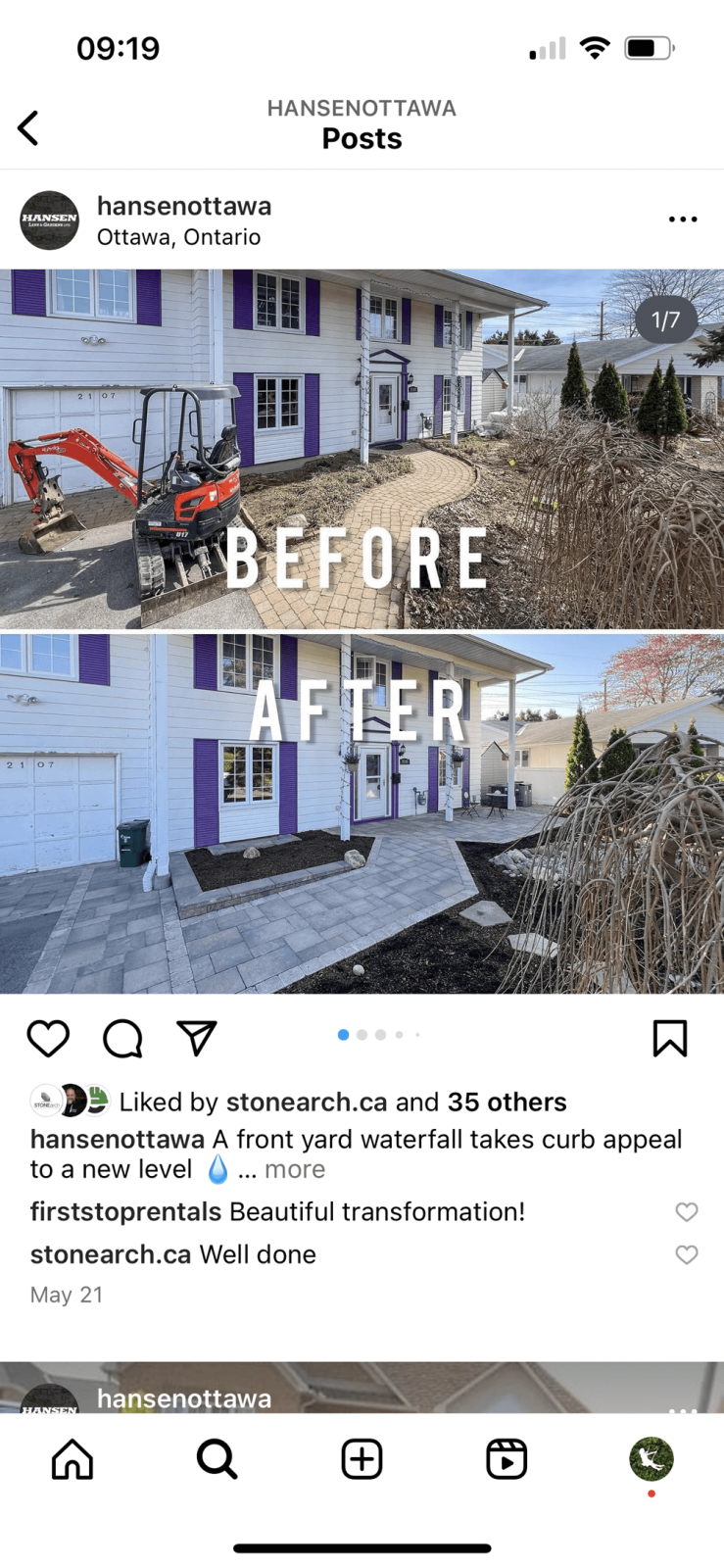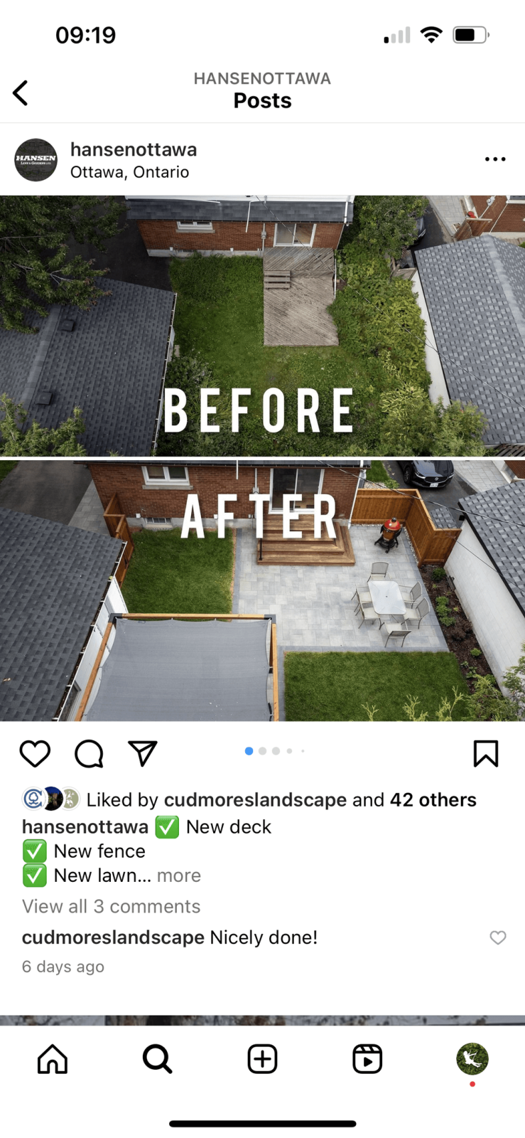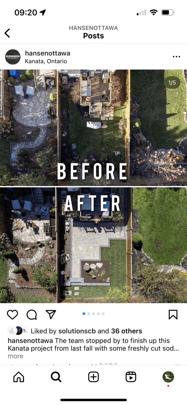 Before and after posts are a classic and easy way to showcase your work on Instagram. They display your services and talent so potential clients can see how you can transform an outdoor space for them. You want them to be as impactful as possible.