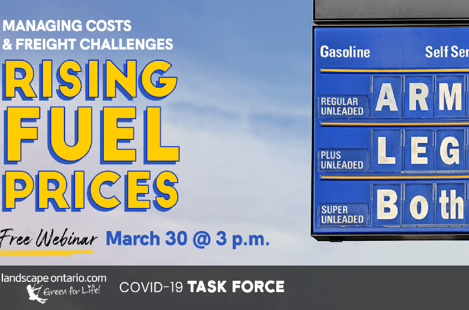 Landscape Ontario’s Covid-19 Task Force presents a special webinar discussion on how business owners can manage rising fuel costs, and how suppliers are dealing with freight and logistical challenges. LO’s Deputy Executive Director Joe Salemi will moderate a discussion with Peter Guinane and Ed Hansen on how landscape business owners can mitigate the impact of rapidly rising fuel costs. Plus, LO Covid-19 Task Force member Jamie Riddell will lead a discussion on the freight and shipping challenges suppliers are facing.