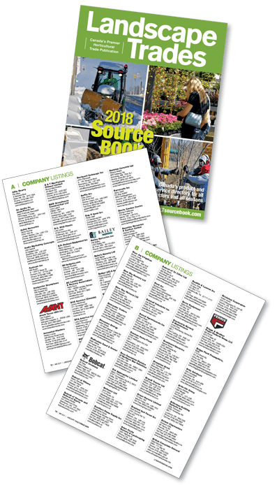 SOURCE BOOK Suppliers, update your FREE product listing now, and make sure your customers can find you when they need you this spring. As a supplier to Canada’s green industry, The print Landscape Trades Source Book |