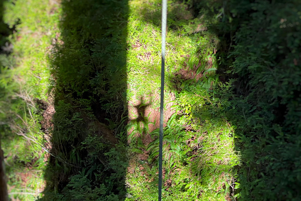 TOP IMAGE: Tim Rademacher waves while climbing a giant sequoia.
