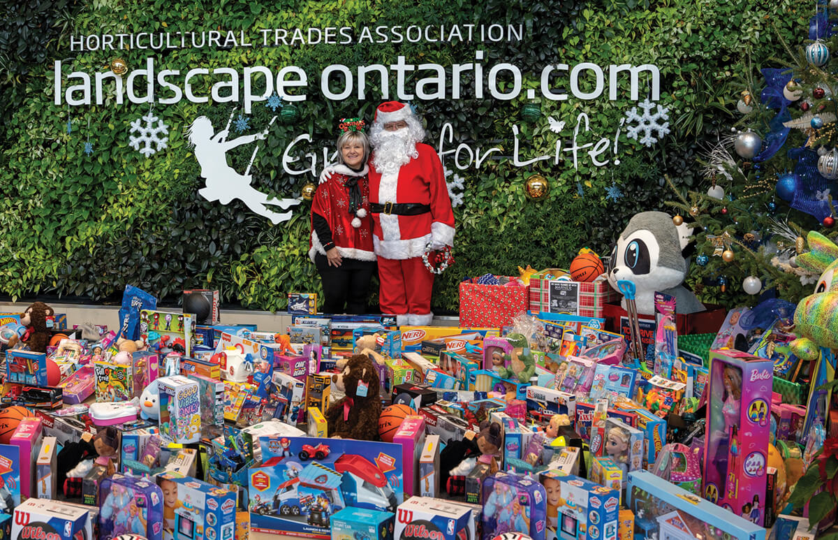 Santa Claus made a scheduled stop at Landscape Ontario’s home office in Milton, Ont., on Dec. 10. Accompanied by Toronto Chapter vice president Wendy Ladd of Jim Pattison Lease, the duo picked up toys donated by members and staff for the Marner Assist Foundation’s Toy Drive and Fundraiser that supports thousands of children during the holiday season. Ladd helped organize several drop off locations across the province, including the one at LO.