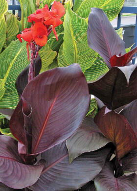 With its purplish-black leaves and coral-coloured blooms, Tropicanna Black is one more colourful way to add a tropical touch to gardens and containers. Tropicanna Black not only works well in landscapes, beds and borders, but since it’s a water plant, it’s ideal for water gardens, bogs and ponds.