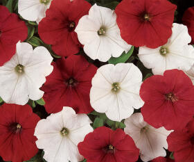 Grow beautiful containers and flowers beds quickly with Easy Wave spreading petunias. One of the best attributes of Easy Wave® is that it has the same great spreading habit and easy maintenance as Wave, but with more height mounding. Plant them any sunny place you want loads of bold colour. New O’Canada Mix features a rich red and crisp white.