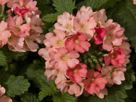 Another new series from Green Fuse Botanicals. Vivid™ verbenas were selected for mildew resistance, bright colours and large flowers. Available colours include Deep Blue, Peach, Rose, White, Red and Zinfandel (deep burgundy). Grows 10 cm (4 in.) tall and spreads 45 cm (18 in.). Green Fuse Botanicals
