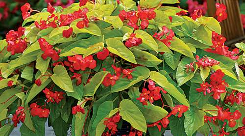 Canary Wings offers a unique take on a staple plant in gardens around the world. Canary Wings has bright chartreuse foliage with beautiful red blooms all season long. Grows best in 60 per cent shade and makes great shade baskets, pots and combinations.
