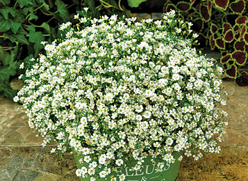 Gypsy White Improved features larger, semi-double blossoms and produces more flowers than its predecessor. This plant also provides better branching and a better growth habit, and is well-suited for containers, small spaces and garden beds.
