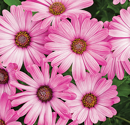 A breakthrough colour for Osteospermum, this pink selection is ideal for spring container recipes. Though its flower is the classic Osteospermum form and it thrives in cool seasons, this plant has also been bred for increased heat tolerance, so it blooms all season in most climates.