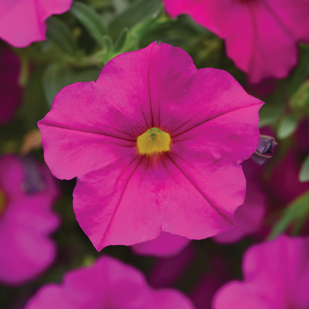 is an intergeneric hybrid of petunia and calibrachoa, combining the best attributes of both. Plants have excellent cold/hot/rain weather performance and a more controlled habit compared to market standards. This series launches with four colours for 2024 – with EnViva Pink as the rock star.
