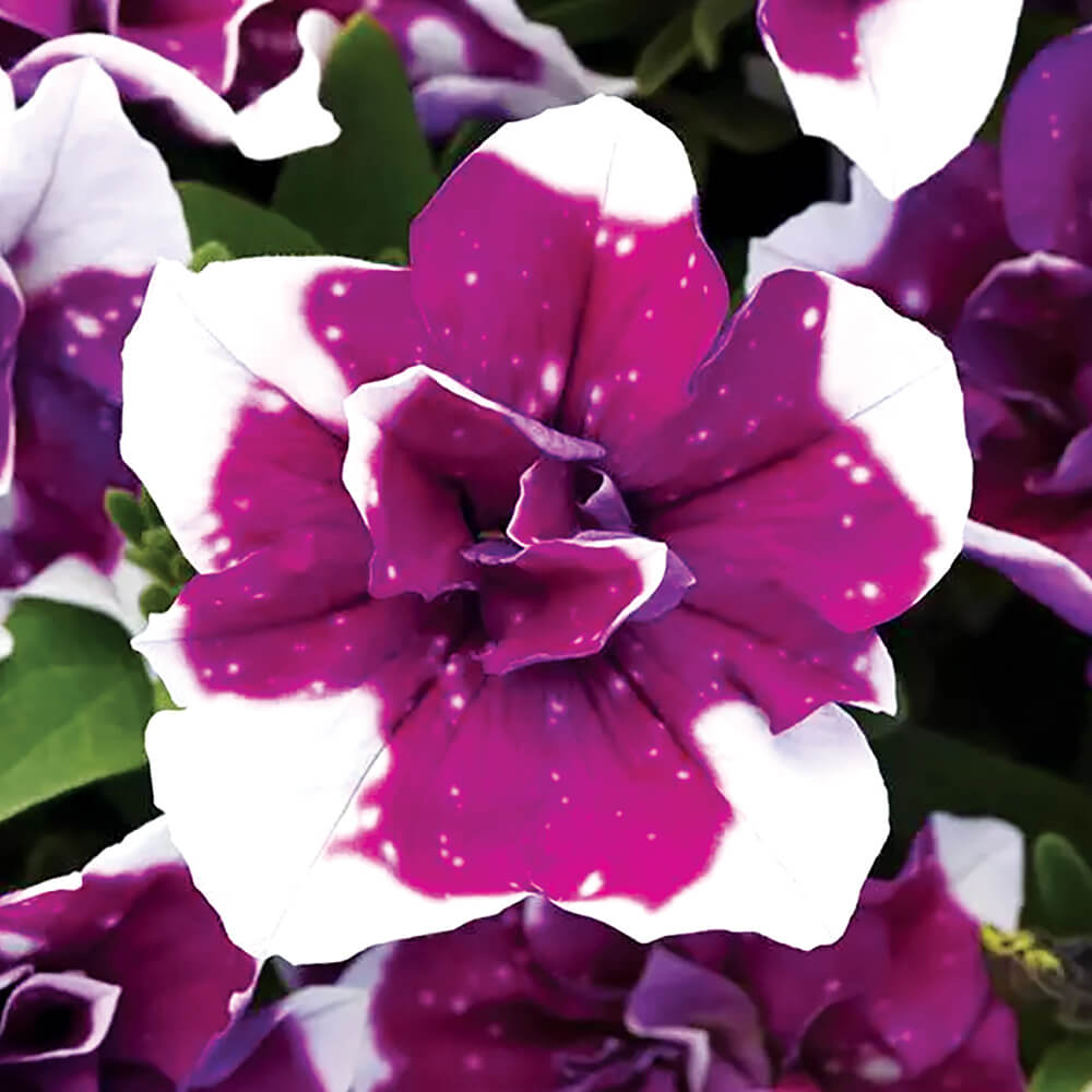 is unique in being the first “sky” pattern in double petunias. The flowers of this series hold up in all weather conditions. Magenta Sky is a unique, eye-catching colour and pattern that will impress in mixed plantings.