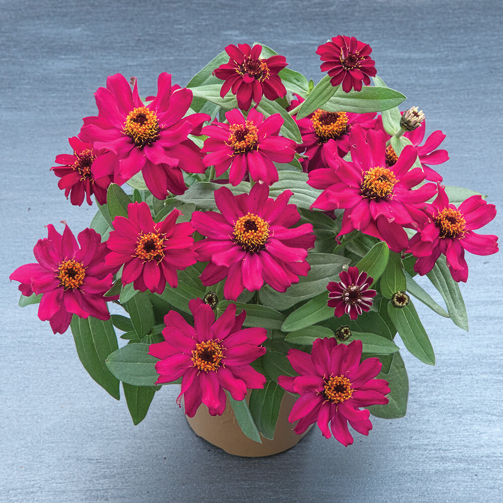 are two new series of interspecific Zinnias that are floriferous, have a naturally compact, branching habit and have excellent heat tolerance. They thrive in containers and gardens. The single Belize flowers are available in cherry, orange, rose and white, while Belize Double is available in orange, rose, scarlet, white and yellow.