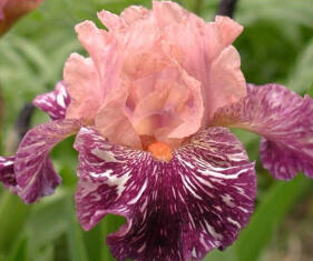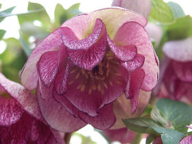 Flowers are an unusual ruffled pink-beetroot purple bi-tone, overlaid with silvery streaks and blotches, and slightly fragrant. Grows 60 cm (24 in.) tall and blooms in early spring. An award-winner. Zone 4. Paridon Horticultural