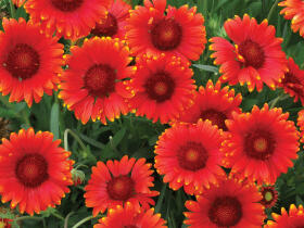 Broad petalled ‘suns’ of hot orange-red float over the mounding foliage of this blanket flower. The breeder claims ‘Red Sun’ features the best habit and flower count on the market. Tolerant of poor soil and hot sun. Zone 4. Grows 25 cm (10 in.) tall and 50 cm (20 in.) wide. Terra Nova Nurseries