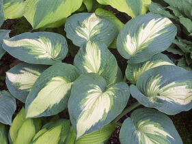 An improved ‘Eskimo Pie’ with wider, brighter blue margins and apple green jetting contrast nicely with the creamy white centre all season. Zone 4. Grows 60 cm (24 in.) tall. Walters Gardens