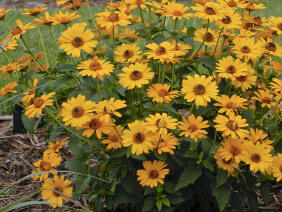 This beautiful and carefree native cultivar offers a more compact habit and good disease resistance compared to other varieties of Heliopsis. Bright golden yellow, daisy-like flowers with an orange-gold button centre are produced on strong stems from mid- through late summer atop the deep green foliage. Zone 4. Grows 60 cm (24 in.) tall and 50 cm (20 in.) wide. Walters Gardens