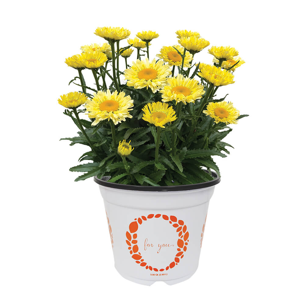 produces a remarkable yellow flower which really stands out in the summer Canadian landscape. Its compact habit is a breakthrough. Cooling and vernalization during greenhouse production can benefit its early flowering, improve flower count and enhance colour. (Hardiness Zones: 4-9)