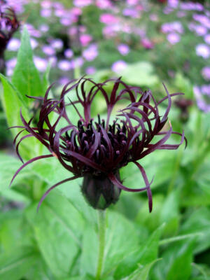 ‘Black Sprite’ (perennial bachelor button) has purple-black flowers