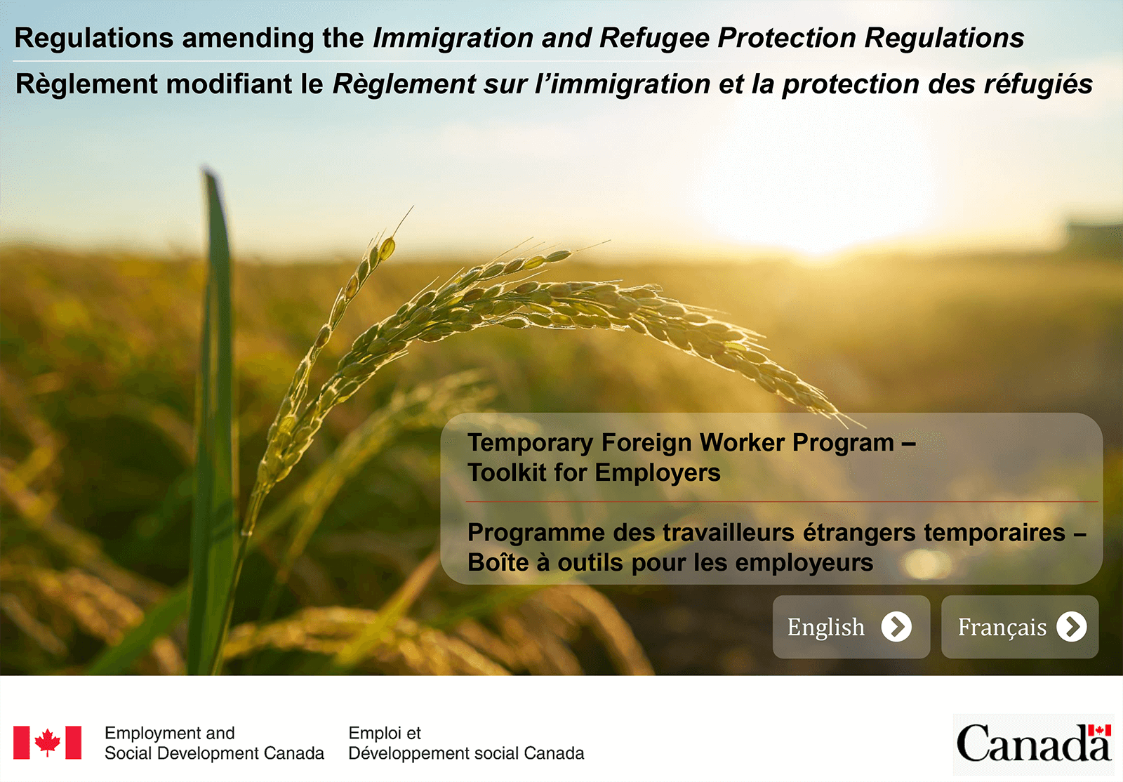 The Temporary Foreign Worker Program (TFWP) remains committed to providing stakeholders with up-to-date information on regulatory and program requirement changes. Please find a digital toolkit that has been developed to help employers and other stakeholders better understand the new program requirements and conditions resulting from the regulatory changes. The updated Temporary Foreign Worker: Your Rights Are Protected guide are also included below in English, French and Spanish. Additional foreign languages will be available soon online.