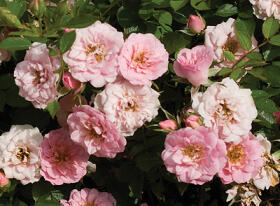 A Proven Winners ColorChoice selection. The sprays of petite, bubble gum-pink flowers and small green leaves are reminiscent of a miniature rose, but this new variety is comparable to ‘The Fairy’ in its mature size. A very refined mound with a strong continuous bloom and good disease resistance. A great rose for the shrub or perennial border. Grows 75-115 cm tall. Hardy to Zone 5.
