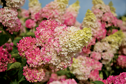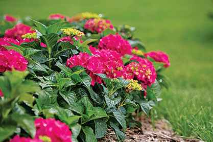 Summer Crush brings a profusion of rich raspberry red or neon purple blooms all summer long. The hydrangea has dark green, glossy leaves, resists wilting in summer heat, and fits smaller garden spaces or containers. Grows to 18-36 inches tall and wide. Hardiness zone 4.