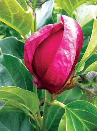 Black-red buds open to small tulip-shaped blooms of deep rich, maroon-purple with tips that fade to a lighter magenta-rose. Genie grows to a height of three to four metres and a spread of two metres. Exposure is full sun to part shade. Hardiness zone 5.