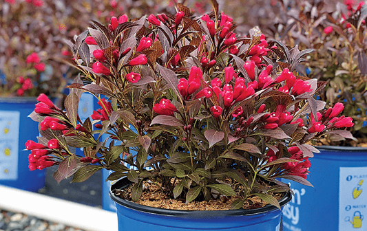 Loaded with electric red flowers against dark foliage, Bloomin’ Easy Electric Love is the first weigela of its kind. Grows two feet tall and three to four feet wide. Hardiness zone 4.